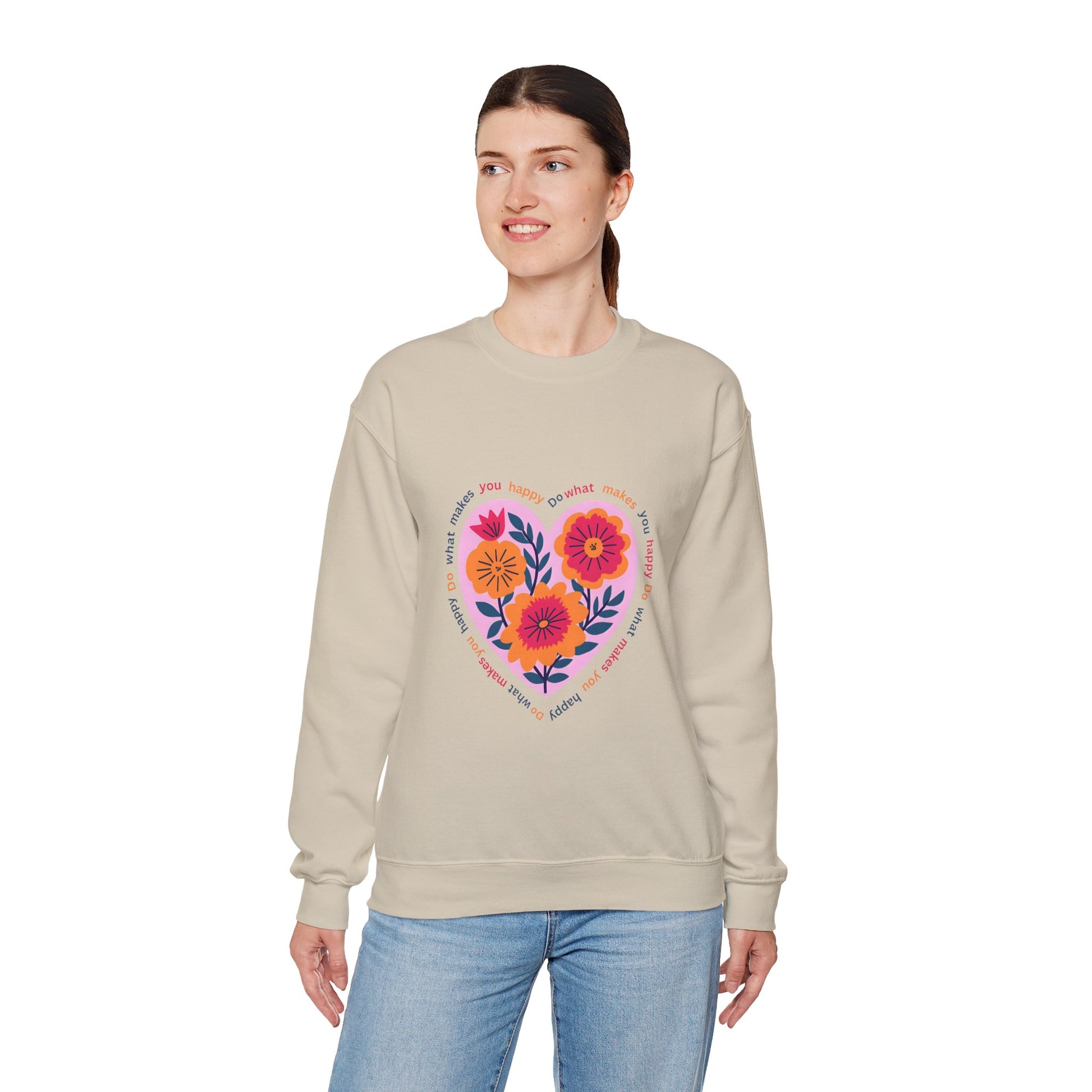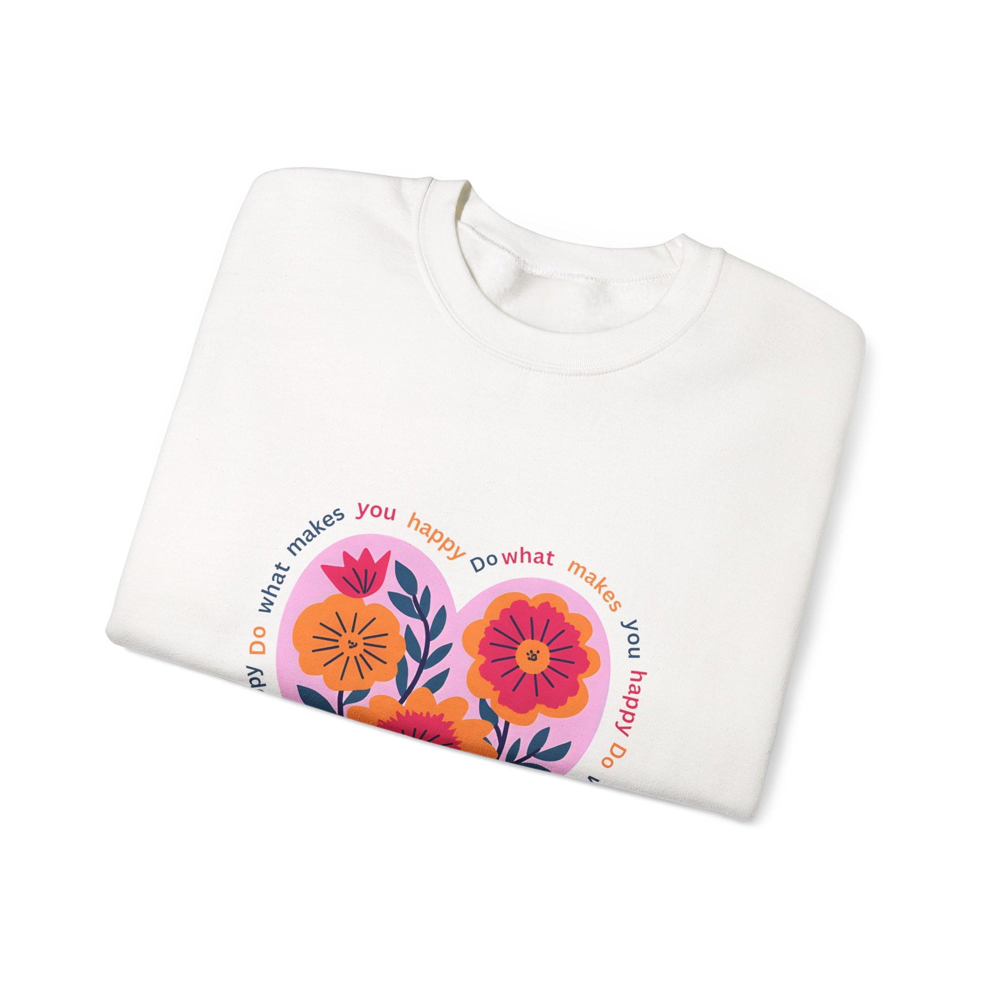 Floral Heart Sweatshirt — 'Do What Makes You Happy' Inspirational Crewneck